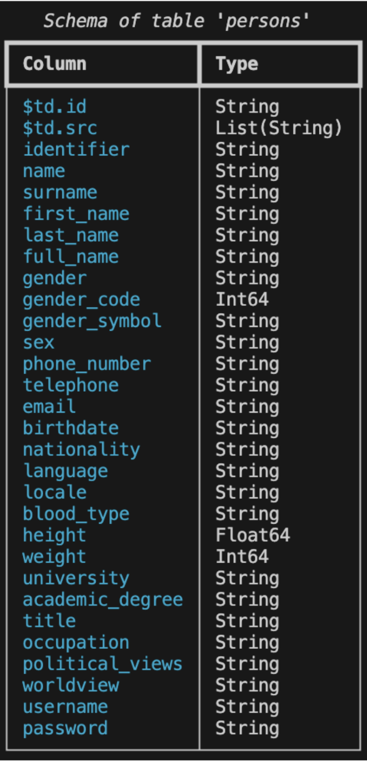 $ td table schema --collection tutorial --name persons